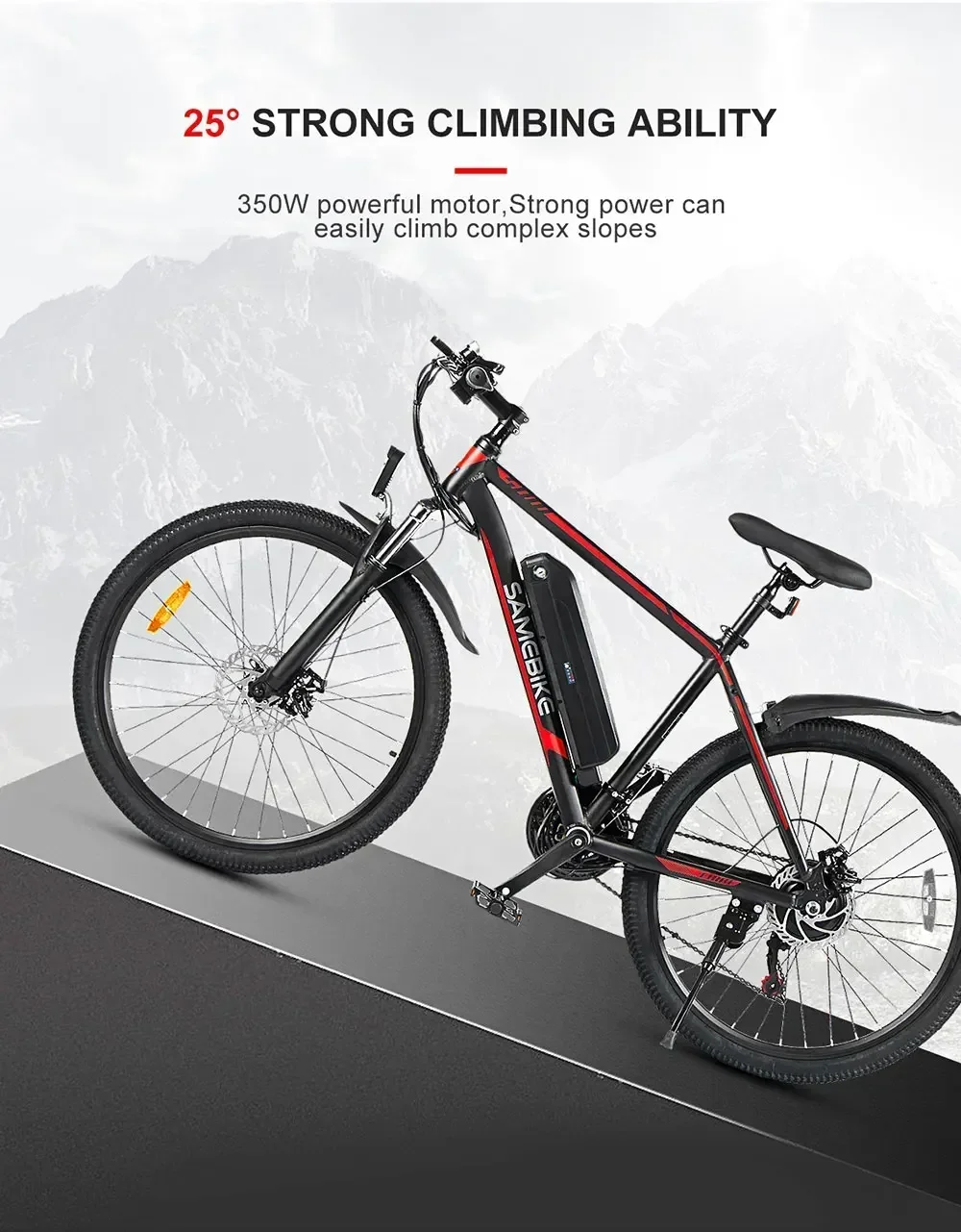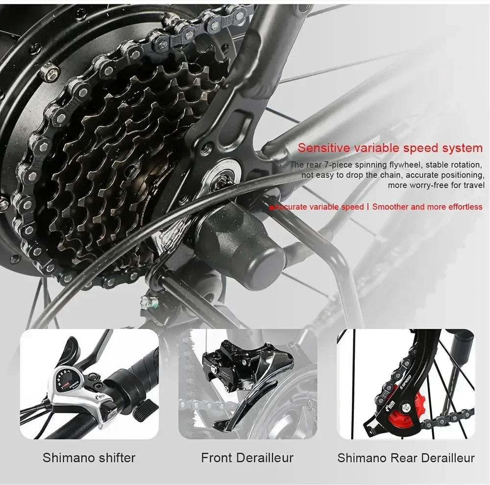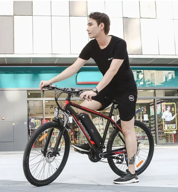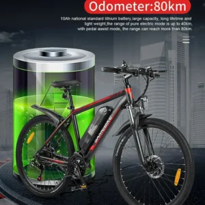 The SY26 E-Bike blends rugged performance with sleek design, featuring a 26-inch aluminum alloy mountain frame and a suspension fork for smooth rides. Powered by a 350W high-speed brushless motor and a 36V10AH lithium battery, it offers electric and pedal-assist modes with a Shimano 21-speed drivetrain. Equipped with a left-side LCD instrument, mechanical disc brakes, 26×1.95″ Chaoyang tires, and short PVC fenders, this 30kg e-bike supports up to 150kg. Perfect for versatile terrains, it packs neatly at 138x25x73cm.